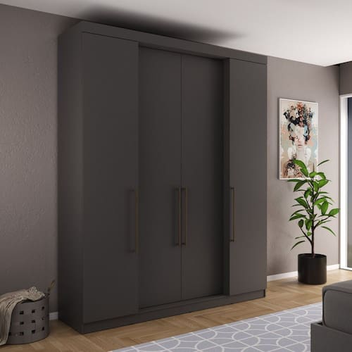 O Guarda-Roupa Berlim 4 portas oferece elegância e praticidade, além de combinar com qualquer ambiente. Este produto apresenta um amplo espaço interno, que conta com cabideiros, prateleiras, calceiros e 4 gavetas que possibilitam uma melhor organização. Acabamento da Prateleira: Pintura Texturizada UV Escala de Brilho da Prateleira: Semi-Brilho Possui Cabideiros: Sim Acabamento da Gaveta: Pintura Texturizada UV Escala de Brilho da Gaveta: Semi-Brilho Possui Organizador de Gaveta: Não Acabamento da Porta: Pintura Texturizada UV Escala de Brilho da Porta: Semi-Brilho Material do Puxador da Porta: Alumínio Ambiente Principal: Quarto codigo_ean: 7900288051424 Complexidade da Montagem: Média: pode ser montado por mais de uma pessoa e/ou necessite de maior conhecimento para montagem Cor: Grafite Cor do Produto: Grafite Cor Interna: Linho Escala de Brilho: Semi-Brilho Espessura da Estrutura (mm): 12 mm Espessura das Portas (mm): 15 mm Espessura das Prateleiras (mm): 12 mm Espessura do Fundo (mm): 3 mm Espessura do Fundo das Gavetas (mm): 3 mm Gaveta com Chave: Não Guarda-Roupa Suporta Até (kg): 20 kg Itens Inclusos: 1 Guarda Roupa, 1 Kit de Ferragens e 1 Manual de Montagem Linha ou Coleção: Inspire Manual de Montagem e Instalação: https://product-hub-prd.madeiramadeira.com.br/975703/documents/0a480861-82f3-47ad-aa7d-6496210873442c095a8984365manualph17171.pdf Marca: Edez Material da Gaveta: MDP Material da Porta: MDP Material da Prateleira: MDP Material Principal: MDP modular: Não Necessita Montagem: Sim Origem do Produto: Nacional Peso: 125,3 kg Peso Máximo por Gaveta: 5 kg Peso Máximo por Prateleira: 5 kg Porta Janelada: Não Possui Calceiros: 04 Possui Capelinha: Não Possui Espaço para Vestidos Longos: Não Possui Espelho: Não Possui Espelho Interno: Não Possui Ganchos: Não Possui iluminação: Não Possui Nichos: Não Possui Painel de TV: Não Possui Penteadeira: Não Possui Pés: Não Possui Portas: Sim Possui Prateleiras: Sim Possui Sapateira: Não Produto Montado: Sim Quantidade de Cabideiros: 02 Cabideiros Quantidade de Gavetas: 04 Gavetas Quantidade de Prateleiras: 11 Prateleiras Recomendações de Uso, Manutenção e Limpeza: Recomenda-se a utilização de pano seco. Sistema de Montagem: Minifix e parafuso Suporta Até (kg): 20 kg Tipo de Corrediça da Gaveta: Metálica Simples Tipo de Dobradiça/Corrediça da Porta: Metálica Tipo de Gaveta: Interna Tipo de Guarda-Roupa: Casal Tipo de Puxador da Gaveta: Não Possui Tipo de Puxador da Porta: Externo