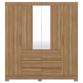 OGuarda Roupa Casal Cadis vem com o design super moderno e visual diferenciado, ótima capacidade de acomodação devido as excelentes repartições internas que conta com 6 prateleiras,4 cabideiros e um amplo maleiro para organizar as roupas e acessórios da melhor forma facilitando o dia a dia e 6 gavetas externas com profundidade ideal, possui 4 portas com abertura convencional, duas delas vem acompanhada de espelhos dando aquele toque final, sendo assim não podemos esquecer da sua estrutura feita em MDP que garante a qualidade e resistência desse móvel.