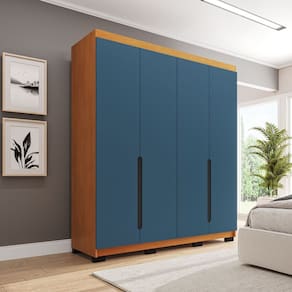 Guarda-roupa Casal 4 Portas Bater Madrid Azul/Freijó