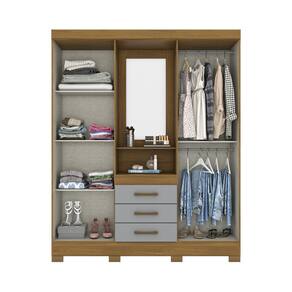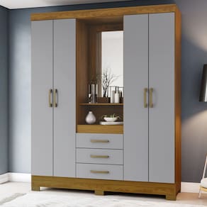 O Guarda-Roupa B24 une design e funcionalidade. O ambiente fica aconchegante e moderno. Foi desenvolvido para oferecer praticidade no seu dia a dia, possui 1 espelho, 4 portas e 3 gavetas é compacto, mas espaçoso, perfeito para a organização das roupas. Os puxadores são de ABS, os cabideiros de madeira são revestidos. Produzido em MDP 15mm.