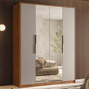 Guarda Roupa Casal 4 Portas Com Espelho e 3 Gavetas Attore - Nude