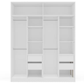 O Guarda-Roupa Casal Madrid 4 Portas com Espelho da Politorno Móveis combina elegância, funcionalidade e excelente aproveitamento de espaço, sendo ideal para ambientes que exigem praticidade sem abrir mão do design. Com 161,1 cm de largura, 200 cm de altura e 46 cm de profundidade, oferece organização eficiente para o dia a dia. Os espelhos integrados ampliam visualmente o ambiente e trazem mais luminosidade, enquanto o puxador embutido valoriza o visual moderno e clean, garantindo conforto e segurança no uso. O acabamento em pintura UV assegura alta durabilidade, resistência e fácil manutenção, mantendo o móvel bonito por muito mais tempo. Um guarda-roupa versátil, sofisticado e com a qualidade Politorno para transformar o quarto com estilo e praticidade.