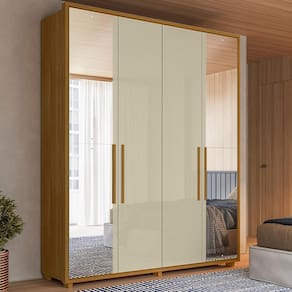 O Guarda Roupa Casal Greco combina modernidade e praticidade trazendo um design refinado para transformar seu ambiente! Estrutura 100% MDF 15/25 mm e acabamento em pintura UV. Possui portas com dobradiças metálicas, amortecimento e puxadores em estilo cava (laterais com espelhos 3mm). Conta também com gavetas de corrediças telescópicas, amplos nichos para armazenamento e cabideiros internos, sendo o superior extensível com pistão a gás, e o inferior um calceiro. NÃO ACOMPANHA OBJETOS NEM DEMAIS DECORAÇÕES. Este produto será entregue em 5 volumes.