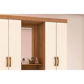 Guarda Roupa Solteiro 4 Portas e 3 Gavetas c/ Espelho Briz B24 Branco/Rosa - Henn