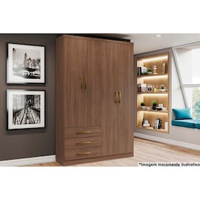 Guarda Roupa Solteiro 4 portas e 3 Gavetas Caju DA135 Castanho - Henn