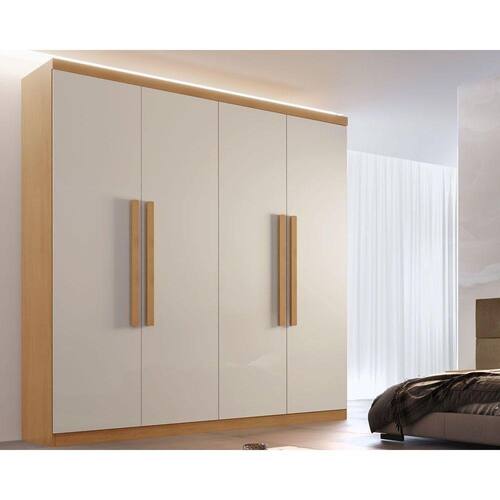 Guarda Roupa Solteiro 4 Portas e 3 Gavetas Império Naturale/Off White - Rufato