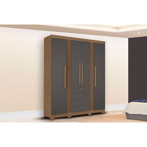 Guarda Roupa Casal 4 Portas e 4 Gavetas c/ Pés Aurora 4.4 Jatobá/Grafite - Santos Andirá - Cinza