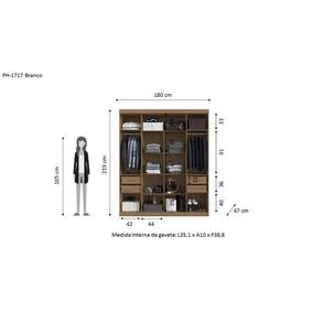 Está precisando de um guarda roupa que acomode todas as suas coisas e ainda tenha uma pitada de elegância? Então não perca mais tempo e adquira já esse lindo roupeiro de casal, com muito espaço, conforto e o melhor de tudo é que combina com qualquer ambiente! Acabamento da Prateleira: Pintura Texturizada UV Escala de Brilho da Prateleira: Semi-Brilho Possui Cabideiros: 02 Acabamento da Gaveta: Pintura Texturizada UV Escala de Brilho da Gaveta: Semi-Brilho Material do Puxador da Gaveta: MDP Possui Organizador de Gaveta: Não Acabamento da Porta: Pintura Texturizada UV Escala de Brilho da Porta: Semi-Brilho Material do Puxador da Porta: Plástico Altura da Cama: cm Altura do Espelho: cm Altura do Espelho 01: cm Altura do Espelho 02: cm Altura do Espelho 03: cm Altura do Espelho 04: cm Altura do Espelho 05: cm Altura do Espelho 06: cm Altura dos Pés: cm Ambiente Principal: Quarto Cama Auxiliar Suporta Até (kg): kg Cama Suporta Até (kg): kg Complexidade da Montagem: Média: pode ser montado por mais de uma pessoa e/ou necessite de maior conhecimento para montagem Cor: Nogueira/Cinza Cor do Produto: Nogueira/Cinza Cor Flex: Cor Interna: Nogueira Escala de Brilho: Semi-Brilho Espessura do Espelho: mm Gaveta com Chave: Não Guarda-Roupa Suporta Até (kg): kg Informações Complementares: Sem espelho Itens Inclusos: 1 Guarda Roupa, kit de ferragens e manual de montagem Largura da Cama: cm Largura do Espelho: cm Largura do Espelho 01: cm Largura do Espelho 02: cm Largura do Espelho 03: cm Largura do Espelho 04: cm Largura do Espelho 05: cm Largura do Espelho 06: cm Linha ou Coleção: Manual de Especificação Técnica: Manual de Montagem e Instalação: https://cdn2.madeiramadeira.com.br/atributo/herval-edez-rs/869897-manual-ph1717.pdf Material da Gaveta: MDP Material da Porta: MDP Material da Prateleira: MDP Material Principal: MDP Montagem Flex: Necessita Montagem: Sim Origem do Produto: Nacional Peso: 126,25 kg Peso Máximo por Gaveta: 5 kg Peso Máximo por Prateleira: 15 kg Possui Calceiros: 04 Possui Espaço para Vestidos Longos: Possui Espelho: Não Possui Espelho Interno: Possui Ganchos: Possui iluminação: Possui Painel de TV: Possui Pés: Não Possui Portas: 04 Possui Prateleiras: 11 Possui Sapateira: Profundida de Cama: cm Recomendações de Uso, Manutenção e Limpeza: Recomenda-se a utilização de pano seco. Sistema de Montagem: Minifix e parafuso Tipo de Corrediça da Gaveta: Metálica Simples Tipo de Dobradiça/Corrediça da Porta: Metálica Tipo de Gaveta: Interna Tipo de Guarda-Roupa: Casal Tipo de Puxador da Gaveta: Não Possui Tipo de Puxador da Porta: Externo
