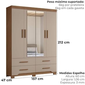 Projetado para atender às necessidades do dia a dia, o Guarda-Roupa Casal Miami oferece espaço e modernidade. Estrutura em MDP (15/ 12 mm) e acabamento em pintura UV. Composto por portas com dobradiças metálicas, cabideiro interno (alumínio), gavetas com corrediças metálicas e prateleiras. Produto com dupla opção de montagem: pés em PVC ou sapatas plásticas (2 mm) conforme preferência do cliente. Este produto será entregue em 04 volumes.