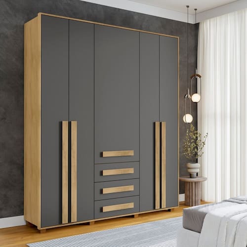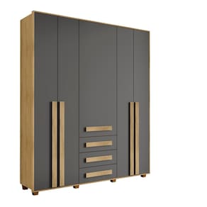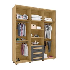Guarda-roupa Casal 5 Portas 3 Gavetas Las Vegas Cinamomo /Grafite - Cinza
