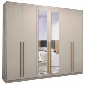 Com design moderno e deslumbrante, esse guarda roupa grande se destacará como peça central em qualquer quarto; pois além de ser um guarda roupa moderno, também é funcional, já que conta com um amplo espaço interno, com nichos organizadores, prateleiras, cabideiros em alumínio e, ainda, espaço para roupas longas como vestidos e casacos. Em outras palavras, tudo pensado para oferecer organização, cuidado e fácil acesso aos pertences. possui seis portas elegantes, permitindo fácil acesso a todas as suas roupas. Para completar, com as 6 Gavetas com corrediças telescópicas, você terá espaço suficiente para guardar peças menores, como meias e roupas íntimas, ao passo que o espelho será o grande trunfo já que será útil tanto para dar aquela conferida no look antes de sair, quanto agregar uma sensação de profundidade ao ambiente.