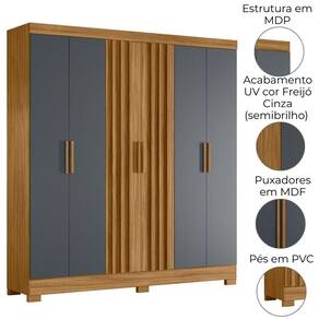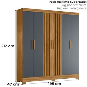 Desenvolvido para facilitar sua rotina, o Guarda-Roupa Casal Valença traz design funcional e amplo espaço interno. Estrutura em MDP (15/12 mm) e acabamento em pintura UV. Composto por portas com dobradiças metálicas, prateleiras internas, cabideiro interno (alumínio) e gavetas com corrediças telescópicas. Produto com tripla opção de montagem: escolha a posição das portas com ripados em MDF (lateral ou central) e defina entre pés em PVC ou sapatas plásticas (2 mm), conforme sua preferência. Este produto será entregue em 03 volumes.