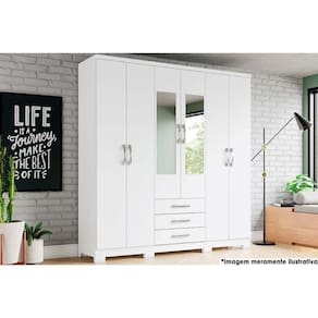 Dimensões(Cm): Comprimento(Profundidade): 181cm x Largura: 47cm x Altura: 200cm Material de Estrutura - MDF/MDP Tipo de Pintura - Ultravioleta Tipo de Acabamento da Pintura - Pintura Fosca Diferenciais Guarda Roupas - Sapateira - Maleiro Tipo de Cabideiro - Aéreo Material dos Cabideiros - Cabideira Metálico Tipo de Dobradiças - Dobradiças Metálicas Quantidade de Portas - 6 Portas de Abrir Tipo de Corrediça - c/ Corrediças Metálicas Quantidade de Gavetas - 3 Tipo dos Pés - ABS/PVC - Pés Opcionais Quantidade de Prateleiras - 6 Montagem do Produto - Desmontável Certificação de Qualidade - Qualidade Aprovada Garantia - Garantia de 90 Dias