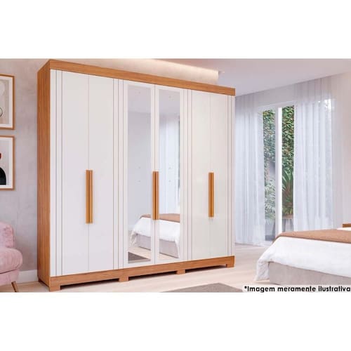 Guarda Roupa Casal 6 Portas (2 c/ Espelho) e 6 Gavetas c/ Pés Cecilia Cinamomo/Off White - Panan