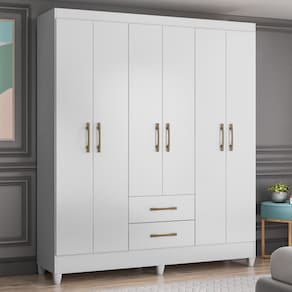Desenvolvido na medida da sua necessidade, o Guarda Roupa Casal 6 Portas 2 Gavetas 153cm Paraná M07 Branco, da Mpozenato, é a opção certa para você que quer um guarda roupa casal pequeno, mas sem abrir da funcionalidade.