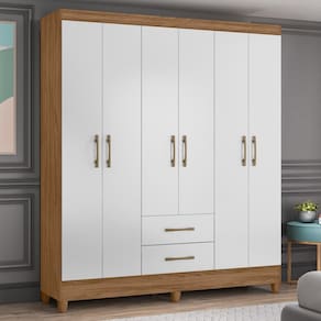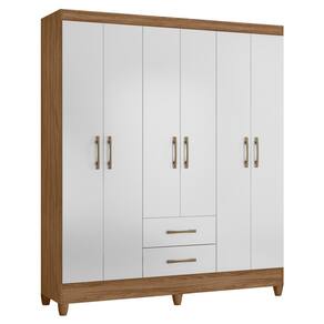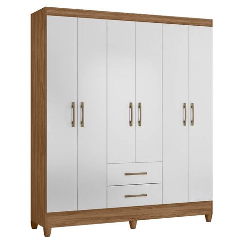 Desenvolvido na medida da sua necessidade, o Guarda Roupa Casal 6 Portas 2 Gavetas 153cm Paraná M07 Naturale/Branco, da Mpozenato, é a opção certa para você que quer um guarda roupa casal pequeno, mas sem abrir da funcionalidade.