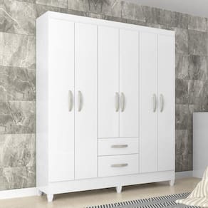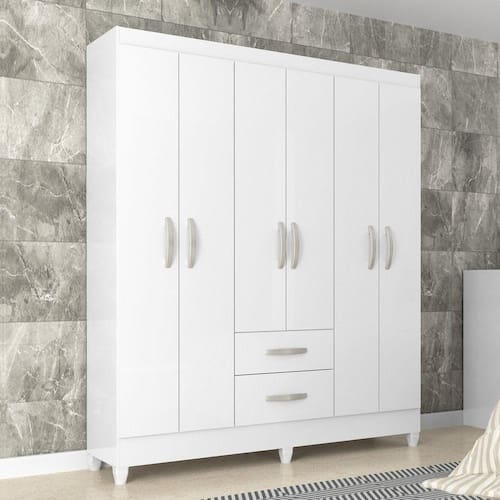 Roupeiro Brasília, em madeira de mdp, com 06 portas, 02 gavetas, , com pés e puxadores na cor do produto, cabideiro, 03 prateleiras, com espaço para roupa longa, espaço para calçados , acabamento em pintura UV. Acabamento da Prateleira: Pintura UV Escala de Brilho da Prateleira: Fosco Possui Cabideiros: Sim Acabamento da Gaveta: Pintura UV Tipo de Corrediça: Metálica Simples Possui Organizador de Gaveta: Não Acabamento da Porta: Pintura UV Escala de Brilho da Porta: Fosco Material do Puxador da Porta: PVC Acabamento dos Pés: Pintura Altura dos Pés: 7 cm Altura Máxima dos Pés: 7.0000 Ambiente Principal: Quarto codigo_ean: 7908308740808 Complexidade da Montagem: Média: pode ser montado por mais de uma pessoa e/ou necessite de maior conhecimento para montagem Cor: Branco Cor do Produto: Branco Cor Interna: Ártico Escala de Brilho: Fosco Itens Inclusos: 1 Guarda Roupa, Kit Ferragens e Manual de Montagem Linha ou Coleção: Light Manual de Montagem e Instalação: https://product-hub-prd.madeiramadeira.com.br/832469/documents/006f46a3-8658-4a0b-b8b8-0f7d49fcf7b8emroupeirobrasilia6pbc3375.pdf Material da Gaveta: MDP Material da Porta: MDP Material da Prateleira: MDP Material dos Pés: PVC Material Principal: MDP Necessita Montagem: Sim Origem do Produto: Nacional Peso: 60,3 kg Peso Máximo por Gaveta: 4 kg Peso Máximo por Prateleira: 9 kg Possui Calceiros: Não Possui Espelho: Não Possui Espelho Interno: Não Possui Painel de TV: Não Possui Pés: 06 Possui Portas: Sim Possui Prateleiras: Sim Produto Montado: Sim Recomendações de Uso, Manutenção e Limpeza: Para limpar, utilizar somente um pano úmido Sistema de Montagem: Parafusos, pregos, cavilhas, pinos. Tipo de Corrediça da Gaveta: Metálica Simples Tipo de Dobradiça/Corrediça da Porta: Metálica Tipo de Gaveta: Externa Tipo de Guarda-Roupa: Casal Tipo de Puxador: Externo Tipo de Puxador da Gaveta: Externo Tipo de Puxador da Porta: Externo Ean: 7908308740808