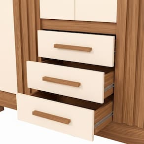 Guarda-roupa Casal B375, pensado para compor espaços bem planejados. Produzido em MDP/MDF de 12/15 mm (fundo 3 mm) com pintura UV texturizada. Conta com portas com dobradiças metálicas (sendo duas delas com detalhes em aplique ripado alto relevo), gavetas externas com corrediças metálicas, puxadores em MDF e prateleiras que suportam até 8 kg cada. O móvel conta com 6 pés em ABS com 5 cm de altura e oferece amplo espaço nos cabideiros (sendo 1 calceiro de madeira) um amplo espaço interno para melhor organização. Produto será entregue em 02 volumes.
