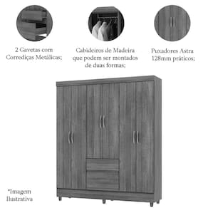 • Pintura: Cabideiro de Madeira Ajustável; Puxador Astra 128mm; Possui 4 Prateleiras;