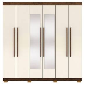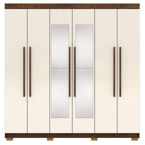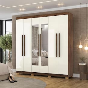 Este guarda-roupa casal com espelho conta com 6 portas com dobradiças metálicas que garantem abertura e fechamento suaves e duradouros. Possui 2 gavetas espaçosas com corrediças metálicas, perfeitas para acomodar roupas dobradas e acessórios com praticidade. Estrutura em MDP de 15mm (Laterais em MDP de 12mm e fundo em MDF de 3mm). Os 2 cabideiros de alumínio oferece mais firmeza para suas roupas penduradas, suportando o uso diário sem deformar. Contem puxadores em MDF revestido, que trazem um toque moderno ao visual, combinando perfeitamente com qualquer ambiente. Para maior estabilidade e elevação do móvel, o guarda-roupa conta com pés retangulares, que além de funcionais, dão um acabamento elegante à peça, acompanha espelho. Este móvel chegará na sua casa separado em 04 volumes.