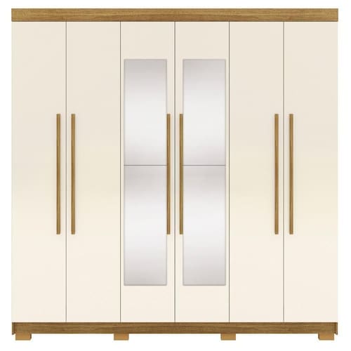 Este guarda-roupa casal com espelho conta com 6 portas com dobradiças metálicas que garantem abertura e fechamento suaves e duradouros. Possui 2 gavetas espaçosas com corrediças metálicas, perfeitas para acomodar roupas dobradas e acessórios com praticidade. Estrutura em MDP de 15mm (Laterais em MDP de 12mm e fundo em MDF de 3mm). Os 2 cabideiros de alumínio oferece mais firmeza para suas roupas penduradas, suportando o uso diário sem deformar. Contem puxadores em MDF revestido, que trazem um toque moderno ao visual, combinando perfeitamente com qualquer ambiente. Para maior estabilidade e elevação do móvel, o guarda-roupa conta com pés retangulares, que além de funcionais, dão um acabamento elegante à peça, acompanha espelho. Este móvel chegará na sua casa separado em 04 volumes.