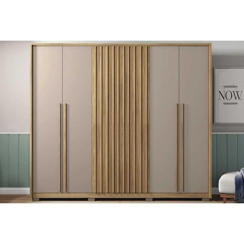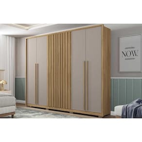 Guarda Roupa Casal 6 Portas (2 Ripadas) e 6 Gavetas New Comodus Buriti/Fendi - Caemmun