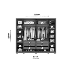 Dimensões(Cm): Comprimento(Profundidade): 57cm x Largura: 268cm x Altura: 234,2cm