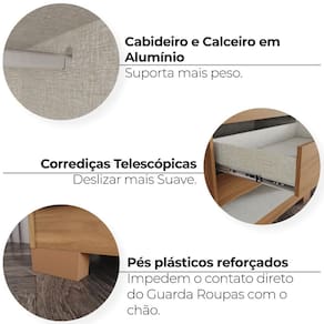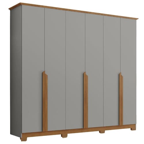 Desenvolvido para manter a organização do quarto sem abrir mão do estilo moderno, o Guarda Roupa Andreás foi pensado para você! Produzido em MDP de 12/25 (fundo em MDF 3 mm) com pintura UV texturizada. Conta com portas com dobradiças metálicas e puxadores em Madeira, gavetas em MDF 15 mm com corrediças telescópica e possui ainda nichos e prateleiras internas bem distribuídos, cabideiros inferiores e superiores em alumínio, além do chapéu com detalhe soft e pés em ABS. Produto será entregue em 04 volumes.