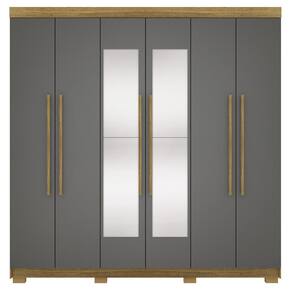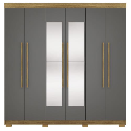 Este guarda-roupa casal com espelho conta com 6 portas com dobradiças metálicas que garantem abertura e fechamento suaves e duradouros. Possui 2 gavetas espaçosas com corrediças metálicas, perfeitas para acomodar roupas dobradas e acessórios com praticidade. Estrutura em MDP de 15mm (Laterais em MDP de 12mm e fundo em MDF de 3mm). Os 2 cabideiros de alumínio oferece mais firmeza para suas roupas penduradas, suportando o uso diário sem deformar. Contem puxadores em MDF revestido, que trazem um toque moderno ao visual, combinando perfeitamente com qualquer ambiente. Para maior estabilidade e elevação do móvel, o guarda-roupa conta com pés retangulares, que além de funcionais, dão um acabamento elegante à peça, acompanha espelho. Este móvel chegará na sua casa separado em 04 volumes.