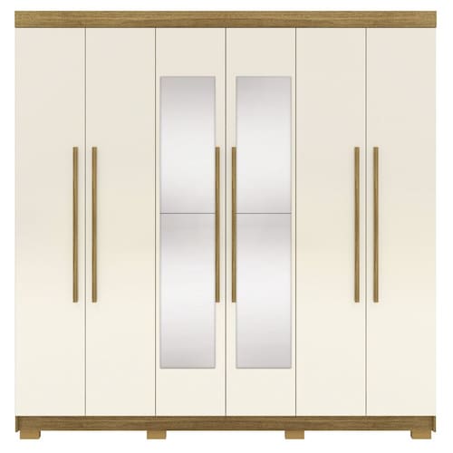 Este guarda-roupa casal com espelho conta com 6 portas com dobradiças metálicas que garantem abertura e fechamento suaves e duradouros. Possui 2 gavetas espaçosas com corrediças metálicas, perfeitas para acomodar roupas dobradas e acessórios com praticidade. Estrutura em MDP de 15mm (Laterais em MDP de 12mm e fundo em MDF de 3mm). Os 2 cabideiros de alumínio oferece mais firmeza para suas roupas penduradas, suportando o uso diário sem deformar. Contem puxadores em MDF revestido, que trazem um toque moderno ao visual, combinando perfeitamente com qualquer ambiente. Para maior estabilidade e elevação do móvel, o guarda-roupa conta com pés retangulares, que além de funcionais, dão um acabamento elegante à peça, acompanha espelho. Este móvel chegará na sua casa separado em 04 volumes.