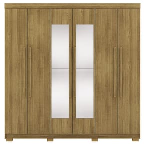 Este guarda-roupa casal com espelho conta com 6 portas com dobradiças metálicas que garantem abertura e fechamento suaves e duradouros. Possui 2 gavetas espaçosas com corrediças metálicas, perfeitas para acomodar roupas dobradas e acessórios com praticidade. Estrutura em MDP de 15mm (Laterais em MDP de 12mm e fundo em MDF de 3mm). Os 2 cabideiros de alumínio oferece mais firmeza para suas roupas penduradas, suportando o uso diário sem deformar. Contem puxadores em MDF revestido, que trazem um toque moderno ao visual, combinando perfeitamente com qualquer ambiente. Para maior estabilidade e elevação do móvel, o guarda-roupa conta com pés retangulares, que além de funcionais, dão um acabamento elegante à peça, acompanha espelho. Este móvel chegará na sua casa separado em 04 volumes.