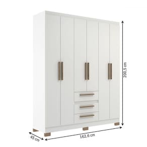 O(a) Guarda-Roupa Casal 6 Portas 3 Gavetas Branco - Decibal é produzido em MDP na escala de brilho Brilho, Fosco e Semi-Brilho, e possui um grau de dificuldade de montagem: Médio.