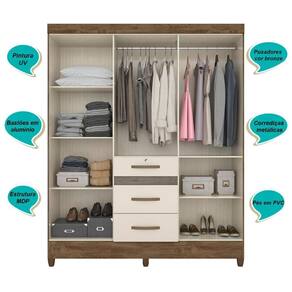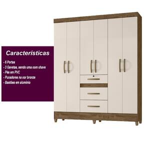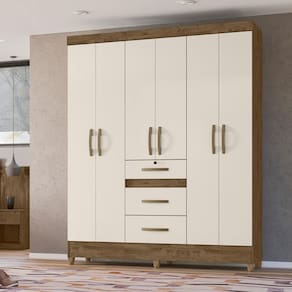 O Guarda-roupa Itatiba é essencial em ambientes menores. Com tamanho compacto, mas com excelente distribuição interna, ele agrega organização e design e qualidade ao seu quarto. As seis portas de bater e três gavetas, sendo uma com tamanho diferenciado, tem excelente distribuição interna. Os cabideiros são em alumínio, as corrediças metálicas.
