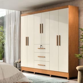 Guarda-Roupa Casal 6 Portas 3 Gavetas com Chave Mumbai MDP - Nature/Off White