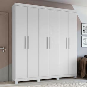 Guarda-Roupa Casal 6 Portas 3 Gavetas Jazz e Pés Branco