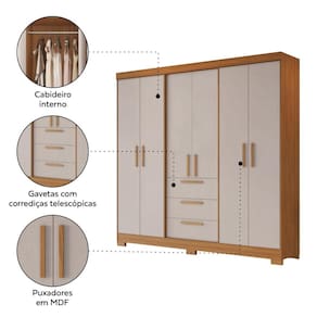 Organização e praticidade para o seu dia a dia! O Guarda-roupa NT 6030 foi pensado para otimizar seu espaço, oferecendo 5 prateleiras internas e 3 gavetas espaçosas, perfeitas para manter tudo em ordem. Os puxadores em MDF dão um toque de sofisticação, enquanto as corrediças telescópicas garantem abertura suave e resistente. Além disso, o cabideiro interno proporciona um espaço ideal para suas roupas ficarem sempre bem alinhadas. Funcionalidade e design em um único móvel!