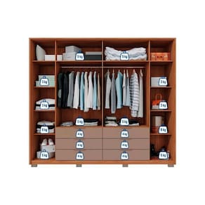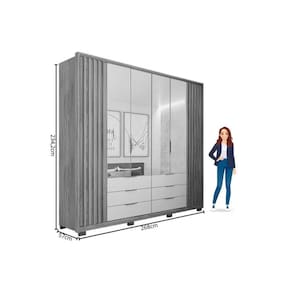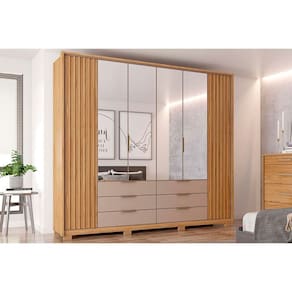 Tipo de Cabideiro - Aéreo Material dos Cabideiros - Cabideira Metálico Tipo de Porta do Guarda-Roupa - Portas de Bater Material das Portas - Portas em MDP Diferenciais das Portas - Portas Ripadas Quantidade de Portas - 6 Portas de Abrir Quantidade de Portas com Espelho - 4 Portas com Espelho Tipo de Espelho - Espelho Externo Quantidade de Espelhos - 4 Espelhos Material das Gavetas - Gavetas em MDP Quantidade de Gavetas - 6 Gavetas Tipo dos Pés - ABS/PVC Quantidade de Pés - 8 pés Material das Prateleiras - Prateleiras em MDP Quantidade de Prateleiras - 10