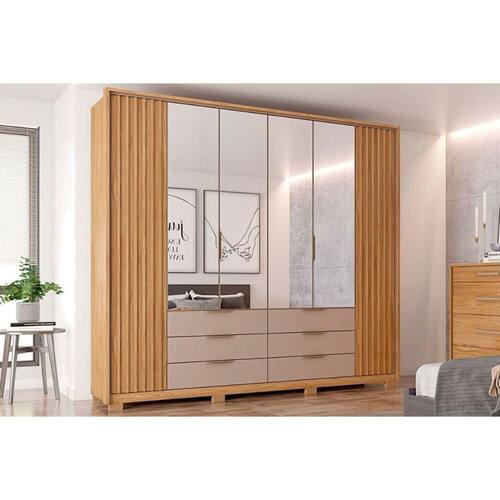 Guarda Roupa Casal 6 Portas (4 c/ Espelho) e 6 Gavetas Maximus Double Lux Buriti/Fendi - Caemmun