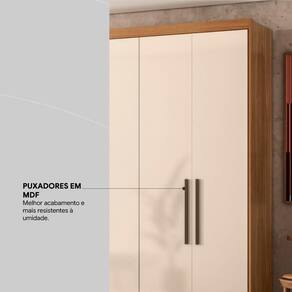 Guarda-roupa com visual sofisticado, materiais com alto padrão de qualidade e incrível capacidade de armazenamento são essenciais para proporcionar um ambiente bonito e organizado. E se você sonha com um móvel assim para o quarto, então vai amar o Guarda-Roupa Venice. O design com portas de giro inteiriças e puxadores com design linear enriquecem a decoração do ambiente e dão a sensação de pé direito mais alto. A incrível interna do Guarda-Roupa Venice, acomoda facilmente em seus três cabideiros, vestidos de diferentes comntos, roupas de verão e inverno, calças e o que você desejar armazenar em cabides. E para as roupas íntimas duas gavetas internas. E se você quer espaço interno para sapatos, bolsas e outros acessórios, vai amar as amplas prateleiras internas! Precisa de mais espaço? O Guarda-Roupa Venice tem amplo maleiro para você armazenar travesseiros, roupas de cama e o cobertor preferido! Para proporcionar maior durabilidade ao móvel, o Guarda-Roupa Venice é equipado com jogo de pés em PVC que protegem seu móvel da umidade e também, facilitam na hora de limpar o ambiente. Muito bom, não é mesmo? Você vai amar viver essa experiência. Você vai amar o Guarda-Roupa Venice.