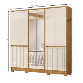 Guarda-roupa Casal 6 portas 4 gavetas com Espelho Freijó/Off White Alasca Moval