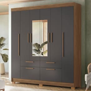 O(a) Guarda-Roupa Casal 6 Portas 4 Gavetas com Espelho Jatoba/Grafite - Santos Andirá é produzido em MDF, MDP e MDP/MDF na escala de brilho Fosco, e possui um grau de dificuldade de montagem: Médio.
