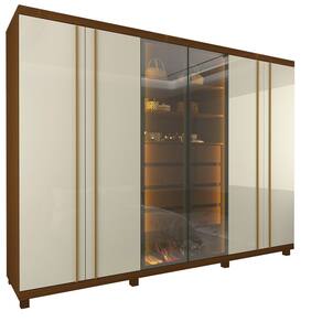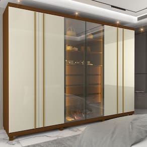 Guarda Roupa Casal 6 Portas 4 Gavetas com Vidro Reflecta e Led Absolut Gelius - Marrom Chocolate
