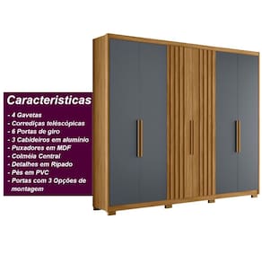 Guarda Roupa Casal 6 Portas 4 Gavetas com Espelho Araguaia Moval