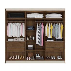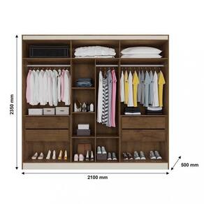 Roupeiro elegante com 6 portas de bater, com dobradiças modernas e reforçadas. Gavetas internas com corrediças telescópicas. Possui puxadores em madeira, excelente espaço interno, cabideiros em alumínio.Características: mdf Dobradiças modernas e reforçadas Puxadores em madeira Excelente espaço interno Divisão para ele e ela Cabideiros e calceiros em alumínio Gavetas com corrediças telescópicas 6 Portas 4 GavetasDimensões: Altura: 237 cm Largura: 210 cm Profundidade: 50 cm Peso: 165,90 kgGarantia do fornecedor de 3 meses