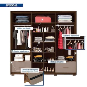 Guarda-Roupa Suburban é uma forma diferente de você montar o seu quarto. Um quarto moderno precisará de um móvel diferenciado, traz a combinação perfeita ótima disposição interna e modernidade, esse móvel faz parte de uma linha de produtos que está disponível no mercado, sendo assim uma linha completa para formar seu ambiente e para total conforto, modernidade e durabilidade, com opções com e sem espelho, a porta central conta com detalhes ripado em MDF que é uma tendência, tornando o móvel moderno, ele é confeccionado em MDP de 15mm e MDF para maior resistência, possui várias repartições para armazenar roupas e objetos, molduras nas portas laterais e centrais em MDF 25 mm. Materiais de 1ª qualidade que respeitam o meio ambiente. Acabamento da Prateleira: Pintura Escala de Brilho da Prateleira: Fosco Possui Cabideiros: 02 Acabamento da Gaveta: Pintura Escala de Brilho da Gaveta: Fosco Material do Puxador da Gaveta: Alumínio Possui Organizador de Gaveta: Não Acabamento da Porta: Pintura Escala de Brilho da Porta: Fosco Material do Puxador da Porta: Alumínio Acabamento dos Pés: Pintura Altura dos Pés: 5 cm Ambiente Principal: Quarto Complexidade da Montagem: Alta: deve ser montado por um montador especializado Cor: Havana/Cinza Cor do Produto: Havana/Cinza Cor Interna: Havana Escala de Brilho: Fosco Gaveta com Chave: Não Guarda-Roupa Suporta Até (kg): 150 kg Itens Inclusos: 1 Guarda Roupas, Kit Ferragens e Manual de Montagem Linha ou Coleção: Suburban Manual de Montagem e Instalação: https://cdn2.madeiramadeira.com.br/atributo/caemmun-moveis/1323680-cx-tlm-ediCAo-b.pdf Material da Gaveta: MDP Material da Porta: MDF/MDP Material da Prateleira: MDP Material dos Pés: ABS Material Principal: MDP Necessita Montagem: Sim Origem do Produto: Nacional Peso: 170,2 kg Peso Máximo por Gaveta: 5 kg Peso Máximo por Prateleira: 5 kg Possui Calceiros: Não Possui Espaço para Vestidos Longos: Não Possui Espelho: Não Possui Espelho Interno: Não Possui Ganchos: Não Possui iluminação: Não Possui Painel de TV: Não Possui Pés: 08 Possui Portas: 06 Possui Prateleiras: 12 Possui Sapateira: Não Recomendações de Uso, Manutenção e Limpeza: Limpar com pano macio levemente umedecido e em seguida pano macio seco, não utilizar produtos abrasivos e/ou a base de solventes. Sapatas Niveladoras: Não Sistema de Montagem: Minifix, cavilhas, parafusos, dispositivos angular Tipo de Corrediça da Gaveta: Metálica Telescópica Tipo de Dobradiça/Corrediça da Porta: Aço Tipo de Gaveta: Externa Tipo de Guarda-Roupa: Casal Tipo de Puxador da Gaveta: Externo Tipo de Puxador da Porta: Externo