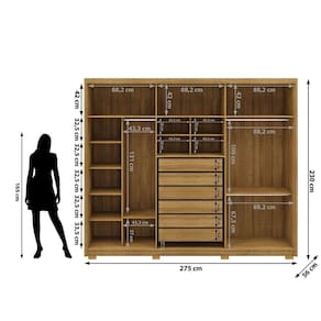 Dimensões do Guarda-Roupa em MDF 6 Portas 6 Gavetas: