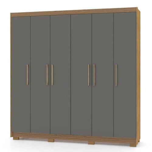 Com um design clássico, esse guarda roupa 6 portas conta com ótimos compartimentos internos, desde gavetas, nichos e cabideiros, os quais são fundamentais para a arrumação de roupas, calçados, acessórios e até mesmo caixas organizadoras, tudo para te ajudar na dinâmica do dia a dia e ter sempre à mão o que precisar. Para completar, o visual robusto e a tonalidade sóbria oferecem modernidade e bom gosto ao ambiente, dando aquele toque de charme na decoração, além de harmonizar facilmente com os demais móveis do quarto.