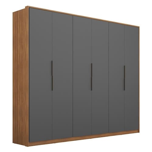 Perfeito para decorar seu dormitório, o Guarda Roupa Atrice vem com amplo espaço interno devido as repartições serem bem distribuídas, esse roupeiro conta com 6 gavetas, 3 cabideiros. 4 prateleiras, lugares para organizar seus sapatos e um grande maleiro para deixar os enxovais arrumados e também 6 portas com abertura convencional facilitando o dia a dia.