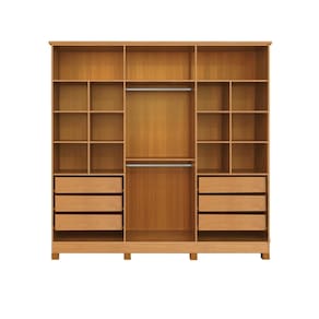 Organização completa com divisões bem planejadas para roupas dobradas, longas e acessórios