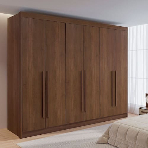 O guarda roupas Zeus Plus é um móvel conceitual e imponente, ele impressiona por sua grandiosidade, pelos espaços bem distribuídos e os detalhes pensados para atender as mais variadas necessidades do usuário, são eles: Produzido 100% MDF, puxadores em mdf alongados com design moderno e funcional, portas com amortecedor nas dobradiças Slow motion, espaço amplo e nichos porta acessórios (gaveta com chave), sapateiras e gavetas com corrediças telescópicas, costas e fundo de gavetas em mdf de 6cm espessura.Atenção:A coloração das imagens do produto pode ter diferentes tonalidades dependendo do seu monitor.Ao receber o produto verifique as seguintes informações:Confira a quantidade de caixas e volumes;Consulte se o nome do comprador consta em todas as etiquetas;Verifique se as caixas não apresentam sinais de danos ou violação;Sempre confira seu produto no ato da entrega.NÃO nos responsabilizamos pela montagem do produto.Caso resida em apartamento, verificar se todos os volumes possuem tamanhos adequados ao elevador,Caso contrário é necessário solicitar ajuda para entrega de seu produto até seu apartamento.! Acabamento da Prateleira: Pintura UV Escala de Brilho da Prateleira: Semi-Fosco Possui Cabideiros: Sim Acabamento da Gaveta: Pintura UV Escala de Brilho da Gaveta: Semi-Fosco Material do Puxador da Gaveta: Poliestireno Possui Organizador de Gaveta: Não Acabamento da Porta: Pintura UV Escala de Brilho da Porta: Semi-Fosco Material do Puxador da Porta: MDF Ambiente Principal: Quarto codigo_ean: 7900288285386 Complexidade da Montagem: Alta: deve ser montado por um montador especializado Cor: Castanho Cor da Porta: Marrom Cor do Produto: Castanho Cor do Puxador: Marrom Cor Flex: Não Cor Interna: Castanho Escala de Brilho: Semi-Fosco Espessura da Estrutura (mm): 15 mm Espessura das Portas (mm): 15 mm Espessura das Prateleiras (mm): 15 mm Espessura do Fundo (mm): 6 mm Espessura do Fundo das Gavetas (mm): 6 mm Gaveta com Chave: Sim Informações Complementares: O roup zeus possui uma gavetinha interna com chave Itens Inclusos: 1 Guarda-Roupa, Kit Ferragens e Manual de Montagem Linha ou Coleção: Slow Zeus Plus Manual de Montagem e Instalação: https://product-hub-prd.madeiramadeira.com.br/473148309/documents/f9924394-c9d6-4a6d-826a-cb702ed41eeabd695120387479085423005541.pdf Marca: D Doro Material da Gaveta: MDF Material da Porta: MDF Material da Prateleira: MDF Material Principal: MDF modular: Não Montagem Flex: Não Necessita Montagem: Sim Nicho com Cabideiro: Sim Origem do Produto: Nacional Peso: 311 kg Peso Máximo por Gaveta: 7 kg Peso Máximo por Prateleira: 7 kg Possui Calceiros: 01 Possui Espaço para Vestidos Longos: Sim Possui Espelho: Não Possui Espelho Interno: Não Possui Painel de TV: Não Possui Pés: Não Possui Portas: Sim Possui Prateleiras: Sim Possui Sapateira: Sim Produto Montado: Sim Quantidade de Cabideiros: 03 Cabideiros Quantidade de Gavetas: 07 Gavetas Quantidade de Prateleiras: 10 Prateleiras Recomendações de Uso, Manutenção e Limpeza: Pano levemente umedecido e pano seco. Não utilizar produtos de limpeza Sistema de Montagem: parafuso / cavilhas Tipo de Corrediça da Gaveta: Metálica Telescópica Tipo de Dobradiça/Corrediça da Porta: Aço Tipo de Gaveta: Interna Tipo de Guarda-Roupa: Casal Tipo de Puxador da Gaveta: Externo Tipo de Puxador da Porta: Externo